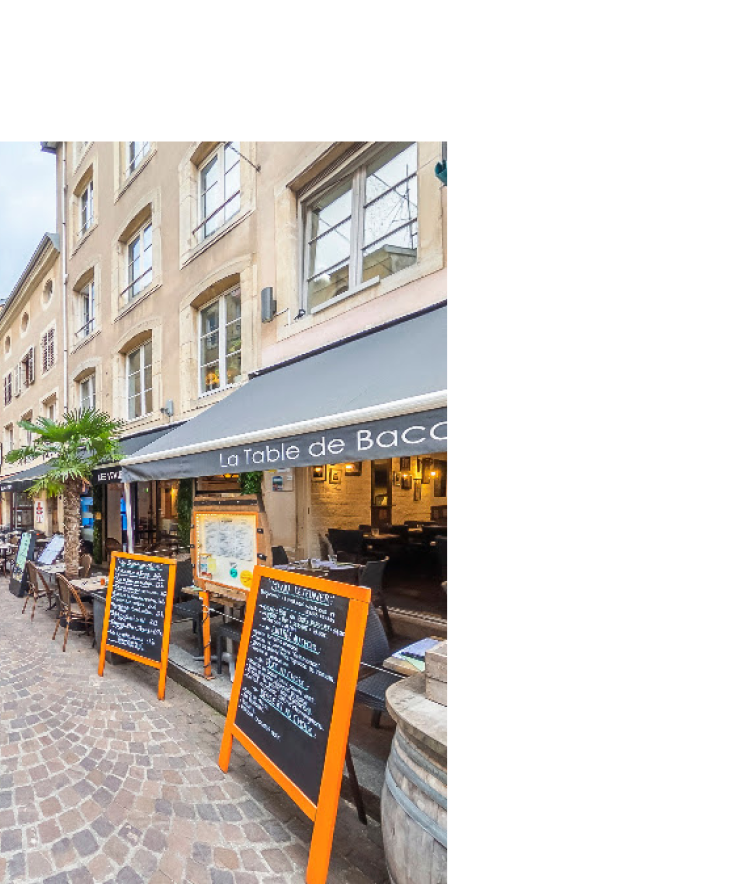 Situé en plein centre ville de Nancy, à seulement 75 mètres de la Place Stanislas, le restaurant bénéficie d’un cadre exceptionnel, à proximité immédiate de la Vieille Ville, de la Place de la Carrière et du Parc de la Pépinière. Avec trois terrasses — dont une grande de 80 places assises — et un parking à proximité, le restaurant La Table de Bacchus est une adresse idéale pour profiter du centre historique.